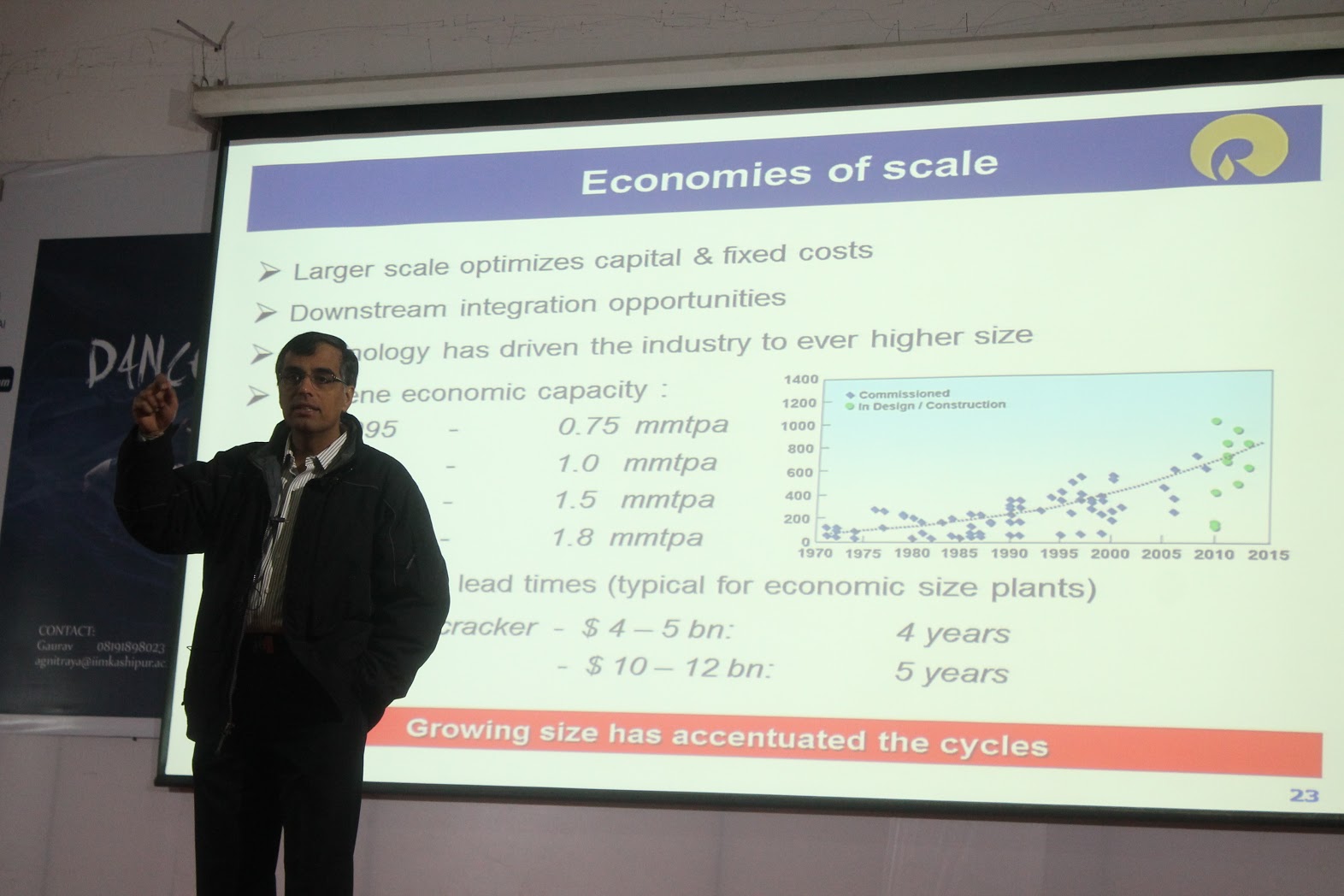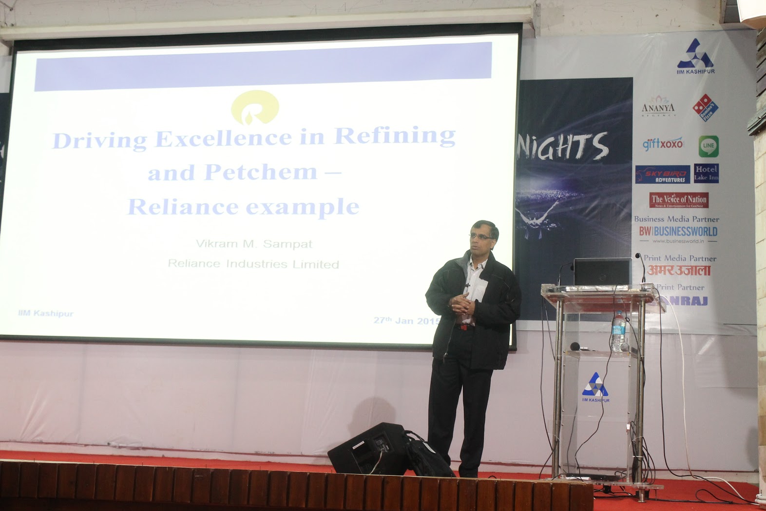 Indian Institute of Management Kashipur welcomed Mr. Vikram Sampat, Vice President, Reliance Industries limited. The topic of discussion was ‘Driving excellence in refining & petrochemicals and India’s energy challenges’. Mr. Sampat discussed the deamand trends over the past century and different types of petrochemicals produced by Reliance Industry and their market share. He also shared his valuable expereince from the industry.